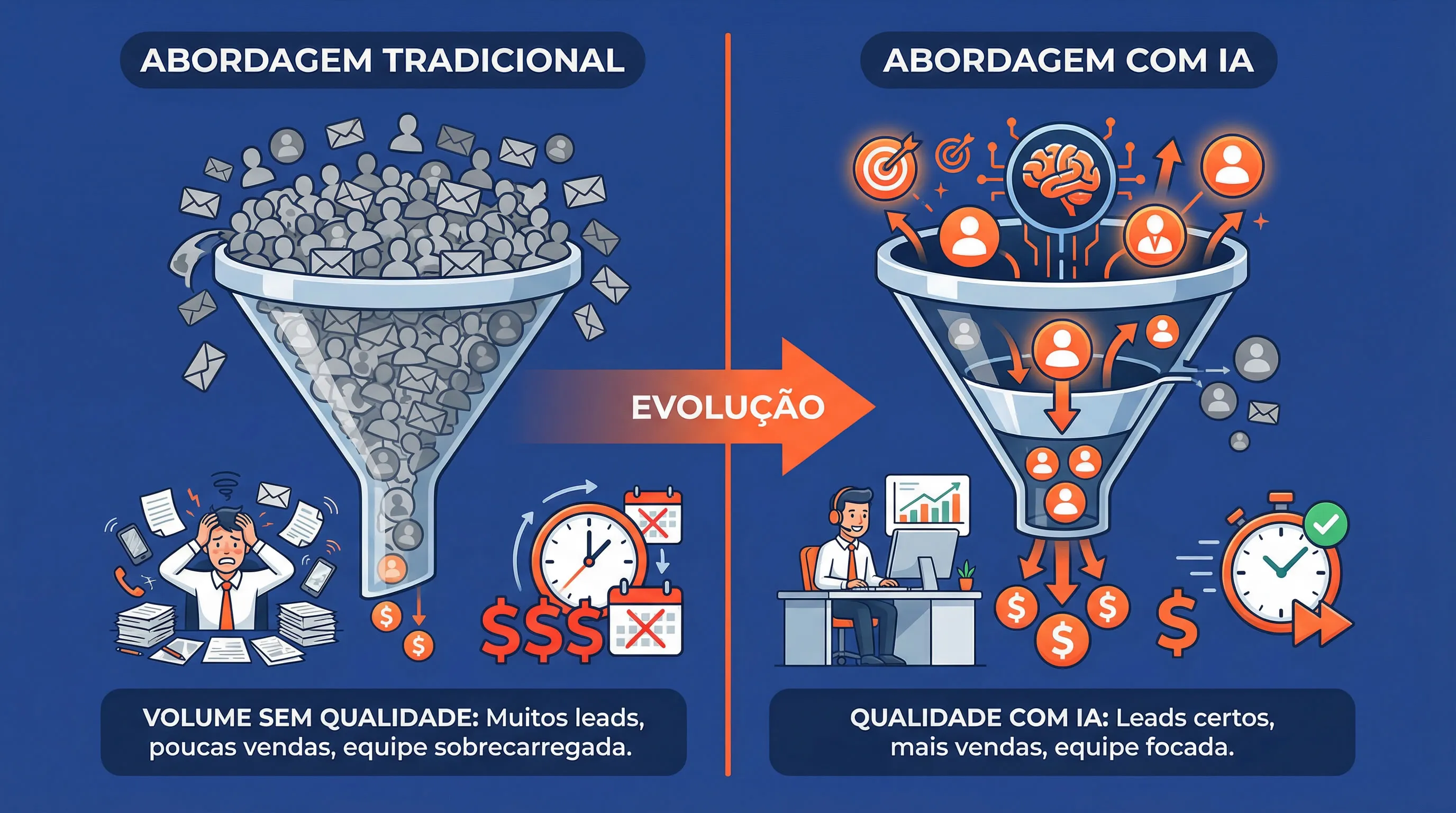 Isso permite que a equipe comercial foque nos leads certos, sem desperdiçar tempo com contatos que não irão converter.