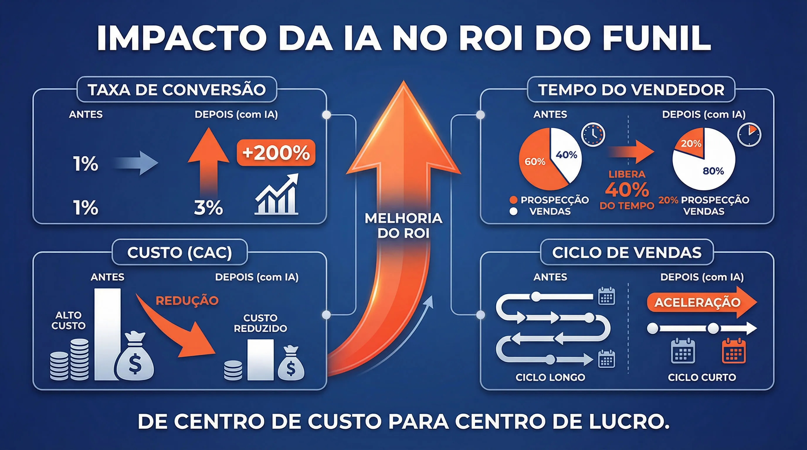 A qualificação com IA no topo do funil não é apenas uma melhoria operacional. Ela impacta diretamente os indicadores financeiros do negócio.