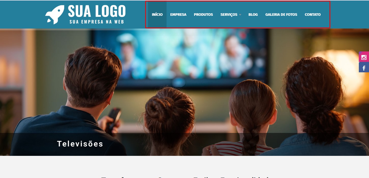 Obs.: Caso você tenha poucas opções de Menu no seu Website, e o seu menu fique muito afastado para a direita da página.