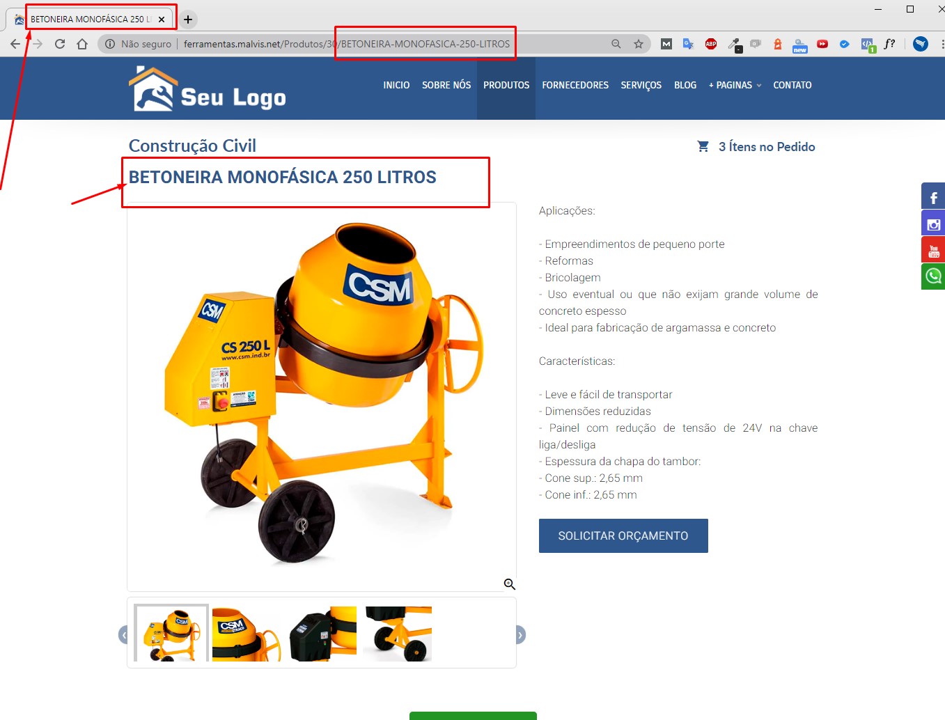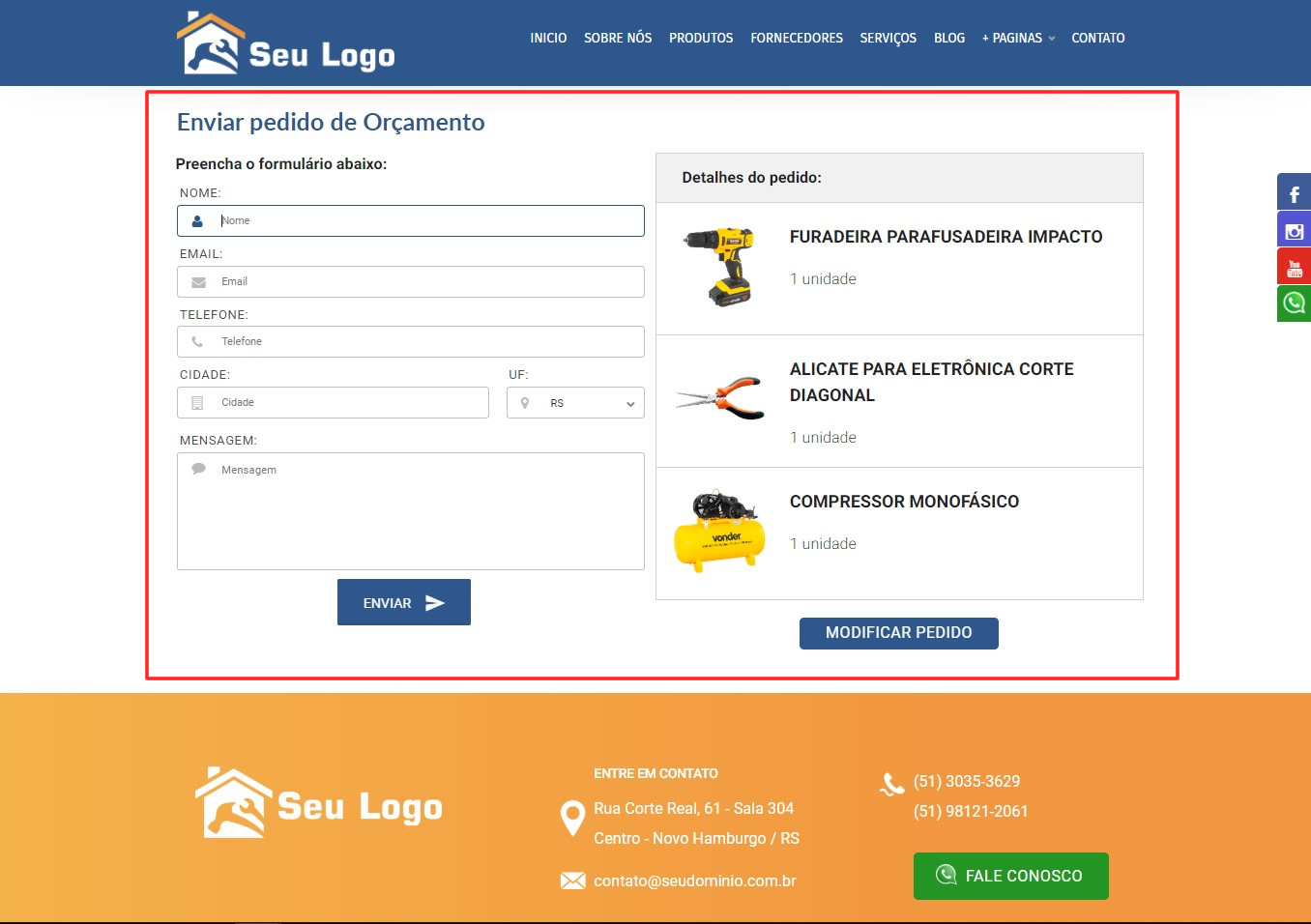 8 - Solicitação de Orçamento - A apresentação de produtos agora conta com um botão de Pedido de Orçamento, onde os usuários podem adicionar vários produtos a uma lista de pedido de orçamento, facilitando assim, o pedido de orçamento de vários produtos de uma única vez.
