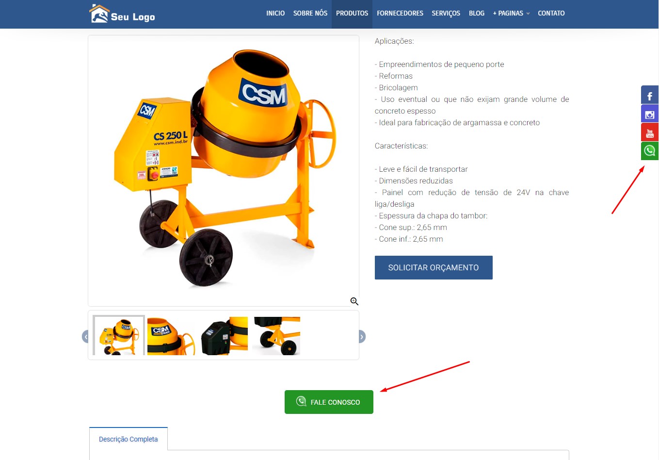 3 - Botões de Whats App - Adicionamos botões de whats app nas páginas de apresentação de produtos e serviços, para aumentar a geração de novas oportunidades de negócios.