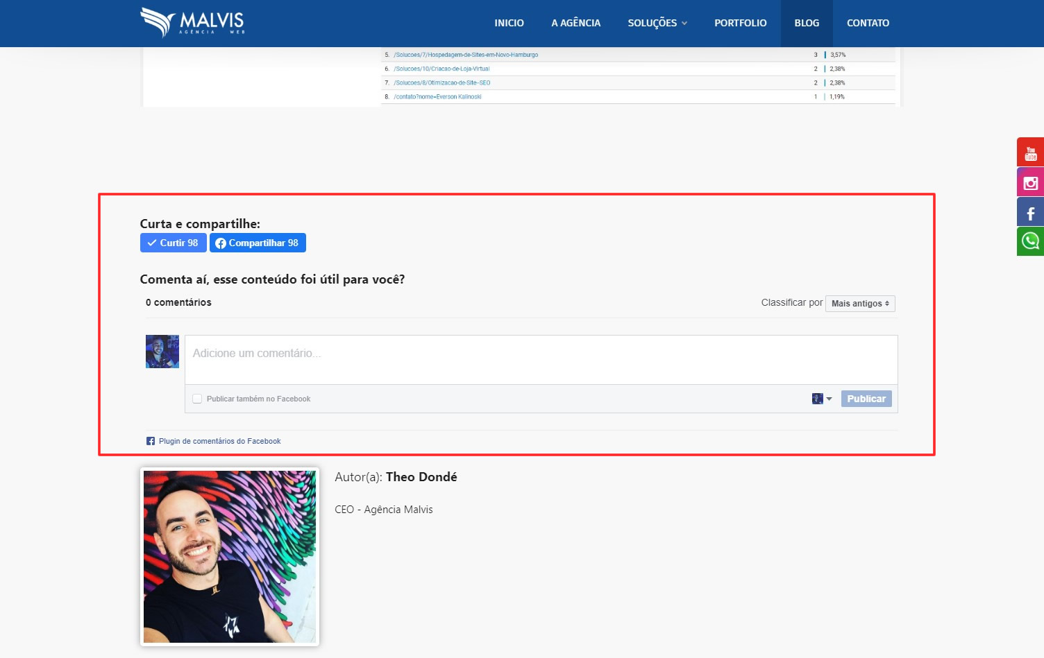 14 - Curtir, Comentar e Compartilhar - Mais interações com o seu públicos alvo. Adicionamos o Plugin do Facebook para Curtir, Comentar e Compartilhar conteúdos do Blog.