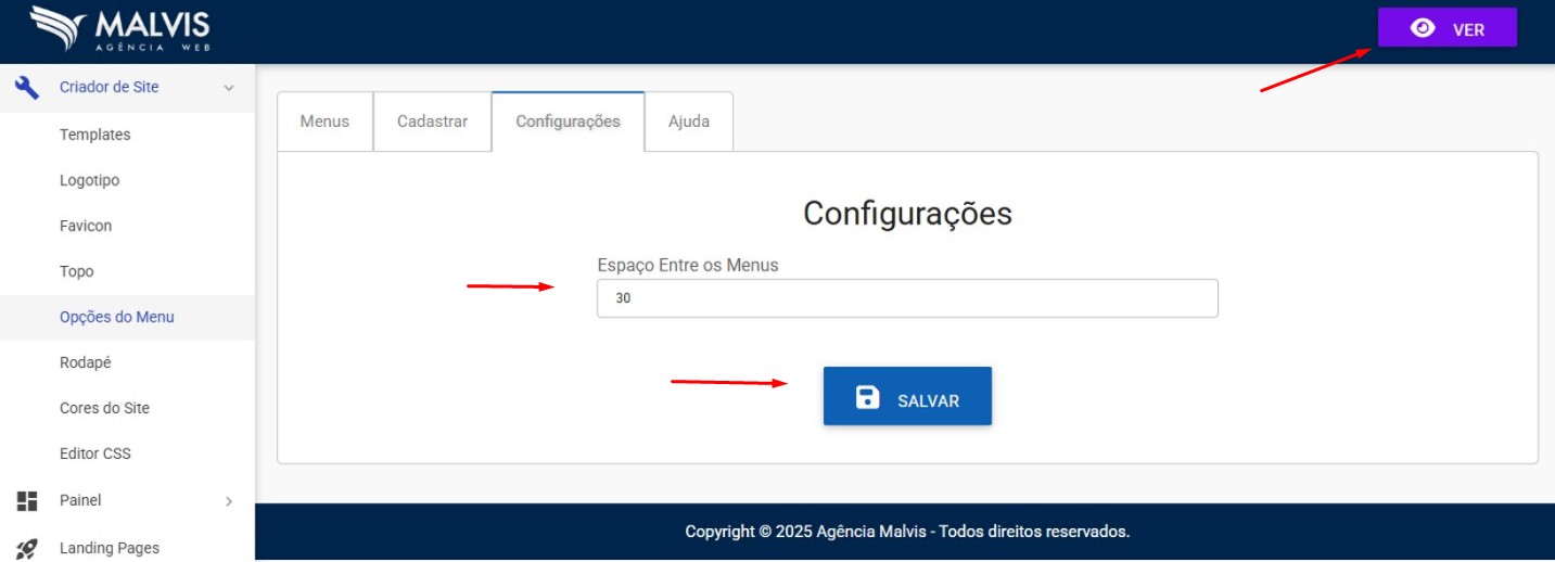 Diminua o Espaço Entre os Menus e Clique em Salvar.