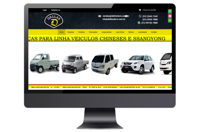 A Dall Motors é uma empresa automotiva que atua com compra, venda e consultoria de veículos novos e seminovos, além de fornecer peças para marcas como SsangYong, Effa, Chana, Towner e JAC. Com mais de uma década de atuação, busca consolidar sua posição no mercado e ampliar sua presença digital.
