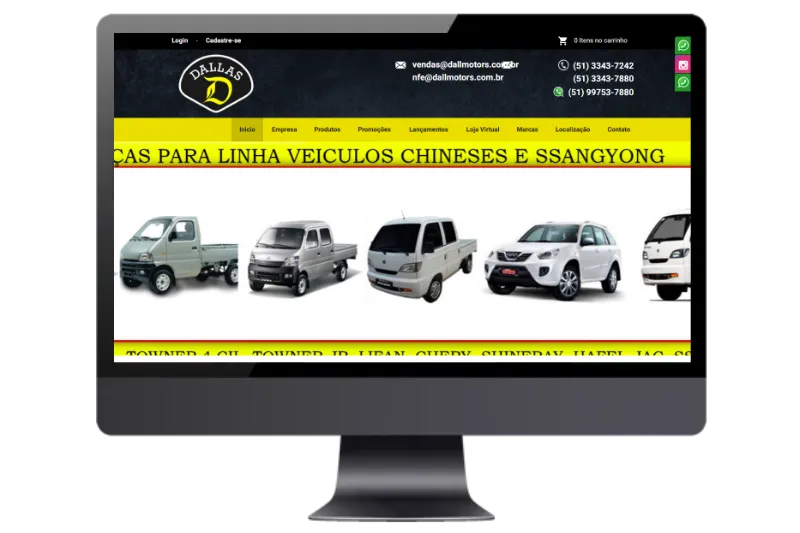 A Dall Motors é uma empresa automotiva que atua com compra, venda e consultoria de veículos novos e seminovos, além de fornecer peças para marcas como SsangYong, Effa, Chana, Towner e JAC.