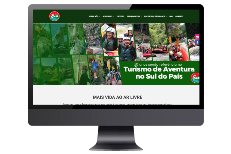 Com uma comunicação digital forte e foco em experiência, a Eco Aventuras elevou seu potencial como destino de turismo de aventura. O novo site destaca cada modalidade (rafting, arvorismo, rapel, tirolesa e mais), com pacotes completos e informações claras.
