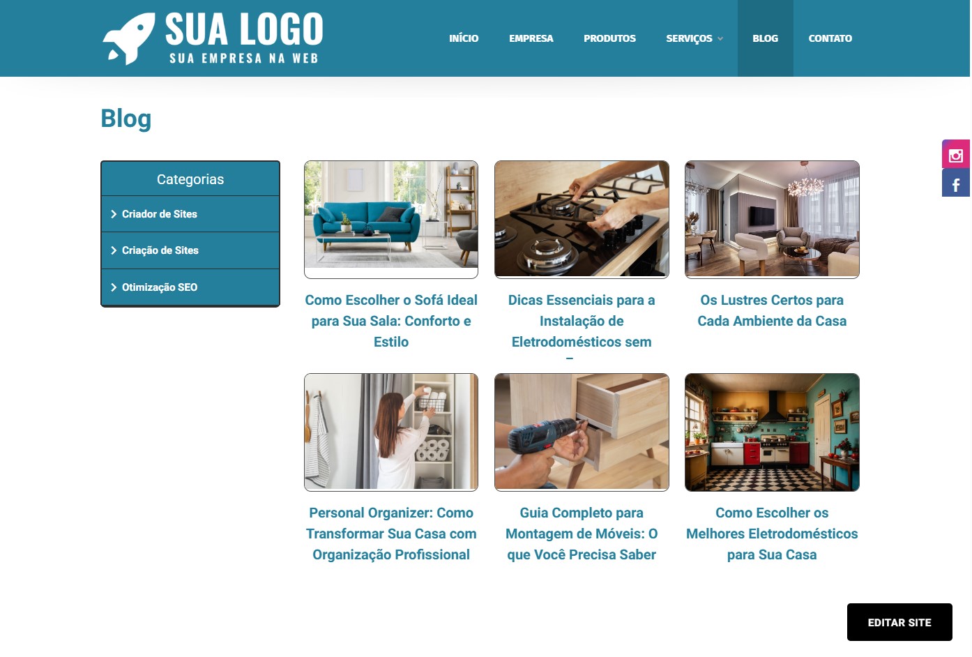 A página Blog pode ser utilizada para compartilhar conteúdos relacionados a sua área de atuação.