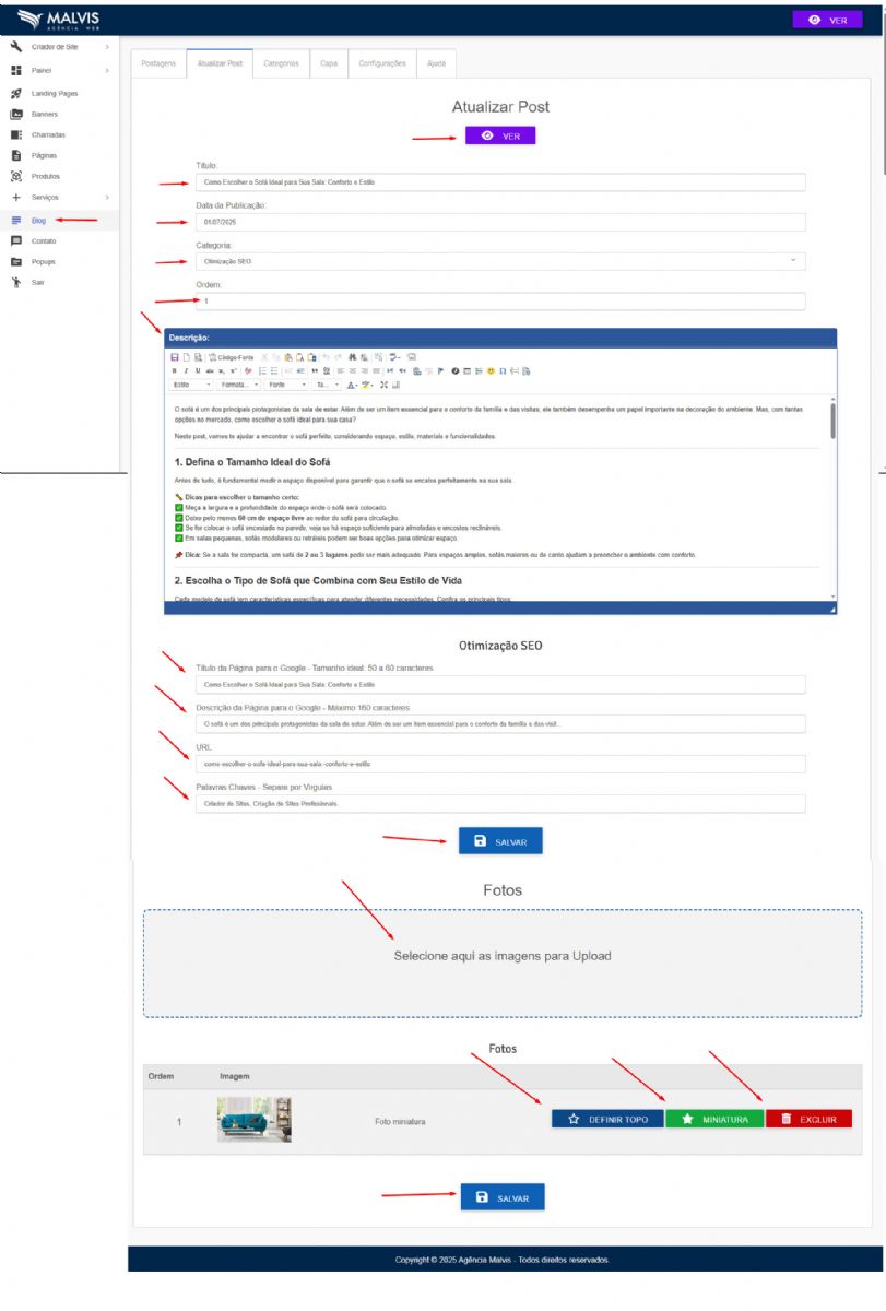 Descrição: Utilize o Editor de Texto para criar a descrição do seu post.