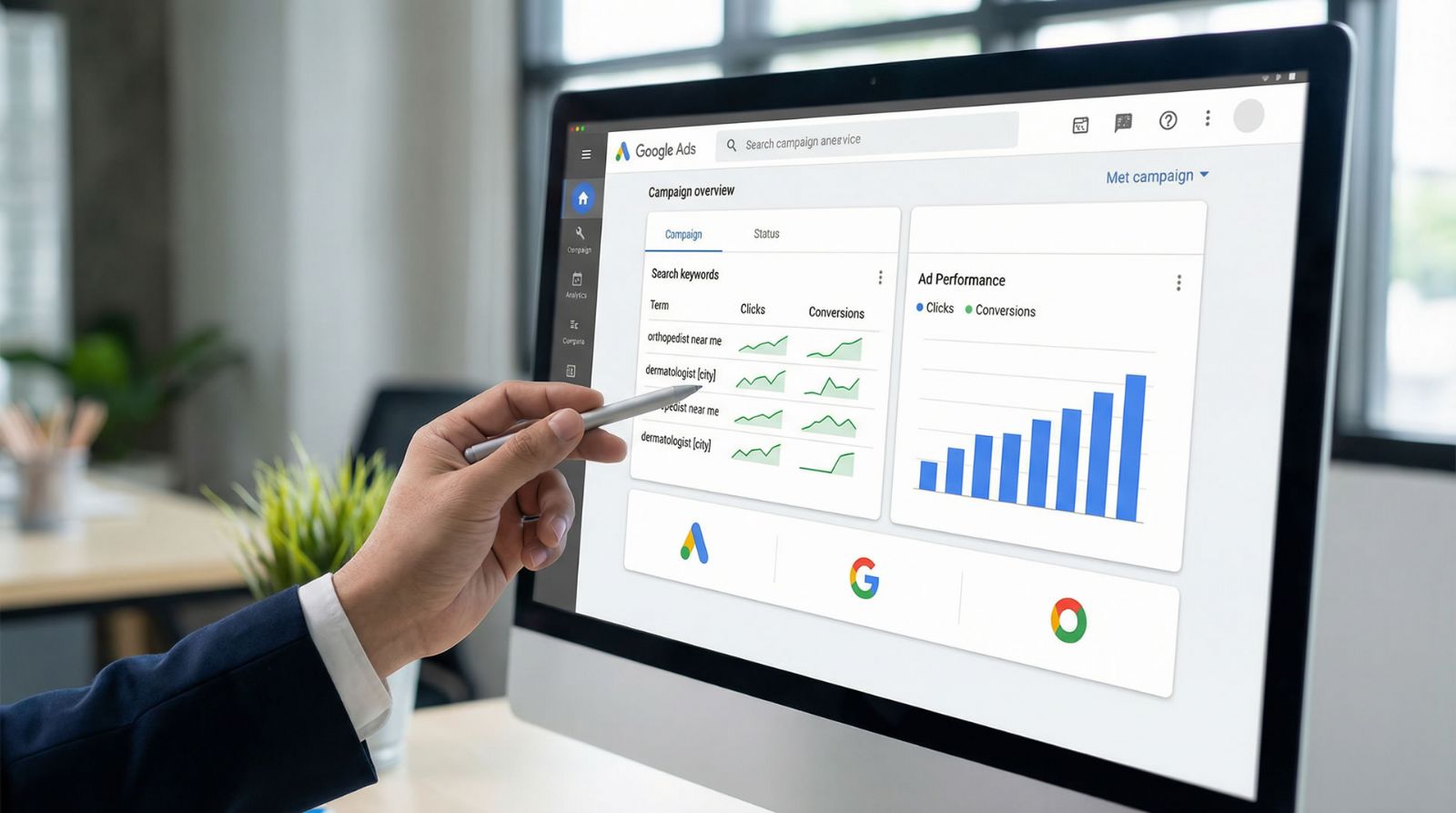 Esqueça o Instagram por um momento. O Google Ads permite que você apareça para pacientes no exato momento em que eles estão pesquisando pela solução que você oferece. A intenção é altíssima.