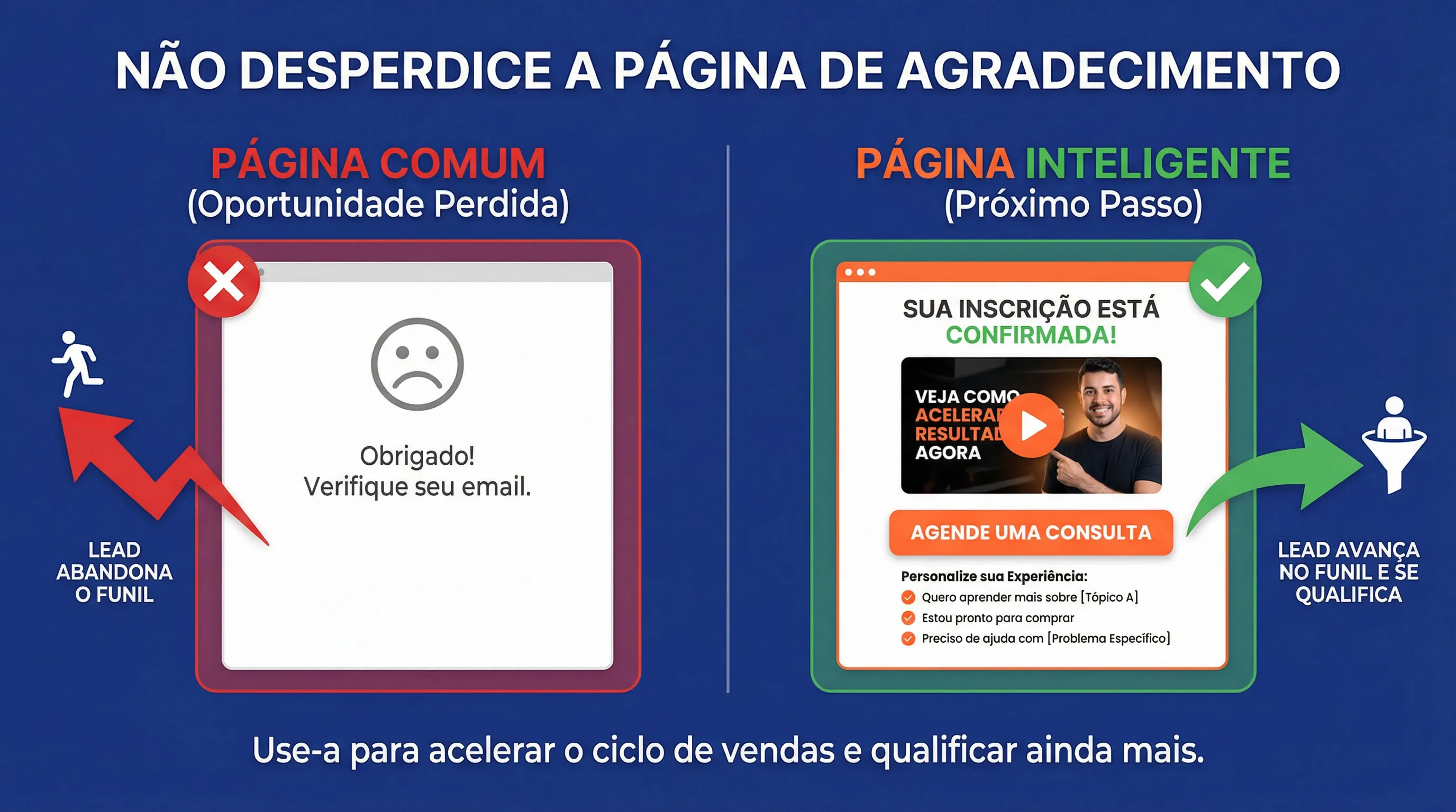 A página de agradecimento é a primeira oportunidade de interação direta com um lead qualificado. Não desperdice esse momento.