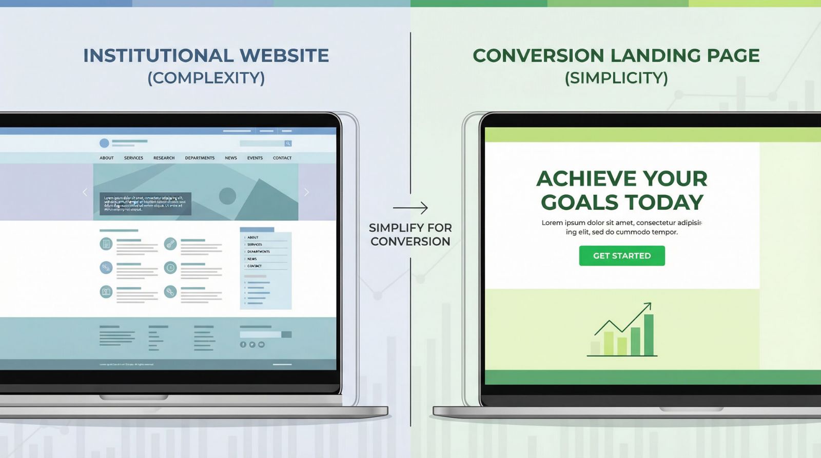 Ter apenas um site institucional é como ter um hospital sem sala de emergência. Ter apenas uma landing page é como atender sem estrutura de apoio.