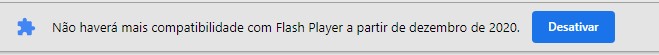O Google Chrome tem alertado que as aplicações em FLASH não irão mais funcionar a partir de dezembro de 2020, conforme print abaixo.